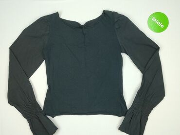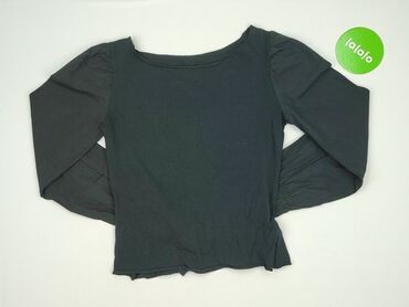 Czarna bluzka z długim rękawem - Fason: dopasowany, długość do bioder - Dekolt: szeroki, zaokrąglony - Rękawy: długie z marszczeniem na ramionach (delikatne bufki) - Materiał: cienka, elastyczna d...