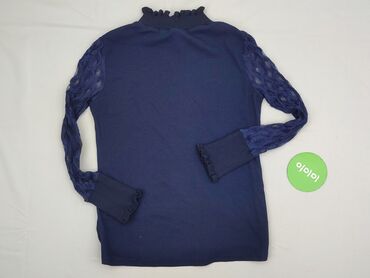 Koronkowa bluzka damska, granatowa - Fason: dopasowany, z długim prześwitującym rękawem - Materiał: delikatna koronka z kwiatowym wzorem; elastyczna dzianina/siateczka pod spodem na korpusie (ręka...Stan: