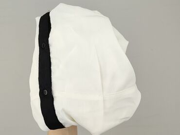 Bluzka damska bez rękawów w kolorze jasnego ecru/kremu, z baskinką. - Krój: dopasowana góra z odcięciem w talii, rozkloszowana baskinka; okrągły dekolt. - Rozmiar z metki: 42. - Zapięcie: długi, k...