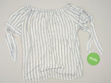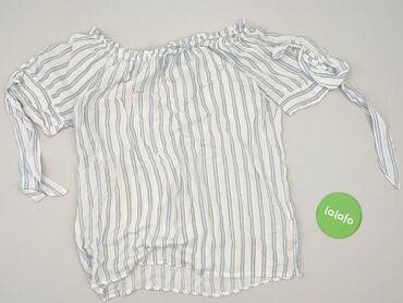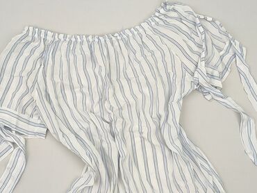 Bluzka damska C&A - Model: hiszpanka z elastyczną gumką przy dekolcie (można nosić na odkryte ramiona) - Krój: luźny, lekko falowany dół i rękawki - Wzór: biało‑niebieskie pionowe paski - Rękaw: k...Stan: