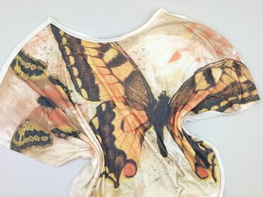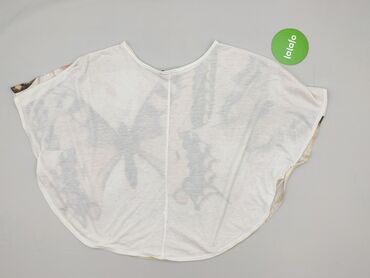 Bluzka damska z motylem i cekinami - Luźny, ponczowo-tunikowy krój z szerokimi rękawami - Okrągły dekolt - Kolor: jasnoszary/ecru z czarnym nadrukiem motyla - Przód zdobiony połyskującymi cekinami...