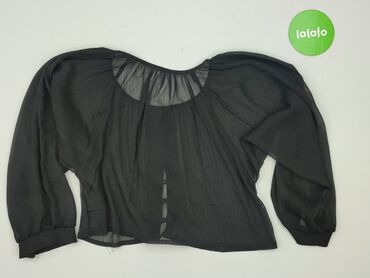 Czarna bluzka damska z lekko połyskującą, melanżową nitką. - Dekolt w kształcie litery V z ozdobnymi, krzyżującymi się paskami. - Rękawy 3/4. - Luźniejszy, lekko zaokrąglony dół z przodu i z tył...