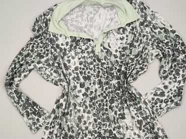 Bluzka damska z wzorem abstrakcyjno‑kwiatowym - Krój: luźny, pudełkowy, zapinana na przodzie na guziki - Rękaw: 3/4 z podwiniętym mankietem - Kołnierz: wykładany, klasyczny - Długość: do bioder - ...