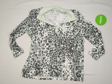Bluzka damska z długim rękawem, rozmiar XXL - Krój: prosty, swobodny, z okrągłym dekoltem - Materiał: 65% bawełna, 35% poliester (metka na zdjęciu) - Wzór: geometryczno-abstrakcyjny, przypominając...