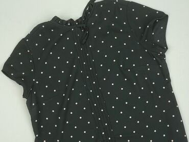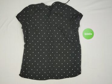 Bluzka damska w grochy - Kolor: czarny w białe kropki - Krój: luźny, lekko wydłużony tył, krótkie rękawy - Dekolt: zaokrąglony z krótkim rozcięciem z przodu - Detale: dwie dekoracyjne, metaliczne ...