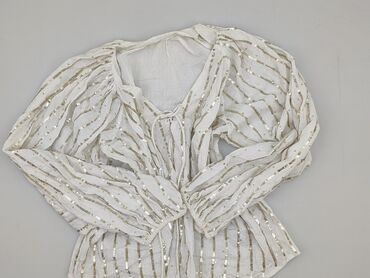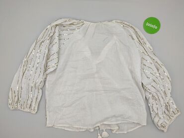 Bluzka damska Sinsay, rozmiar L. - Kolor: biały - Fason: luźna, w stylu boho - Dekolt: szeroki, z delikatnym V oraz troczkami zakończonymi chwostami - Rękawy: długie, bufiaste, zakończone elastycz...
