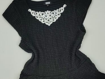 Elegancka bluzka idealna do spódnicy lub spodni – świetna zarówno na co dzień, jak i na wieczór dzięki efektownej aplikacji przy dekolcie. Marka: BIK BOK. Rozmiar S. Kolor czarny. Materiał elastyczny, podkreślający talię, z falującym dołem peplum.