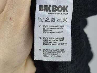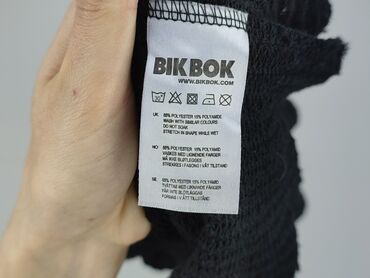 Czarna bluzka damska marki Bik Bok w rozmiarze M. Charakteryzuje się plisowaną fakturą materiału i krótkimi rękawami. Dekolt w kształcie litery V dodaje jej elegancji. Bluzka wykonana jest w 100% z...