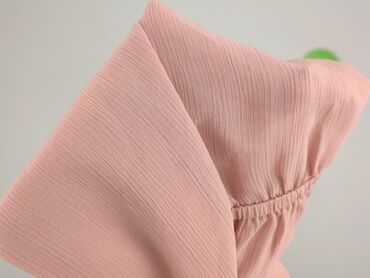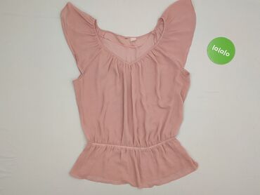 Bladoróżowa bluzka bez rękawów SP, rozmiar M. - Materiał: 100% poliester (lekka, zwiewna tkanina, półprzezroczysta). - Krój: luźny, z delikatnymi zakładkami i falbaną z przodu; dół wykończony gumk...