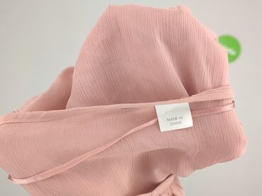 Bladoróżowa, lekka bluzka damska z długim rękawem. - Materiał: cienka, półprzezroczysta tkanina o marszczonej fakturze. - Krój: swobodny, z zaokrąglonym dekoltem; tył wydłużony (asymetryczny dół). ...