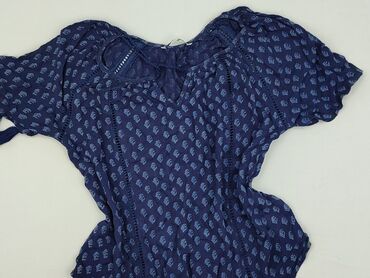 Bluzka damska F&F - Kolor: granatowy - Materiał: 100% wiskoza (etikieta na zdjęciu) - Krój: luźny, tunikowy - Rękaw: 3/4 - Dekolt: okrągły z niewielkim rozcięciem i troczkami do wiązania - Ozdoby:...