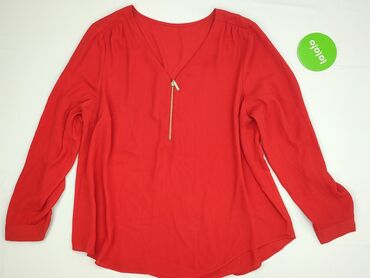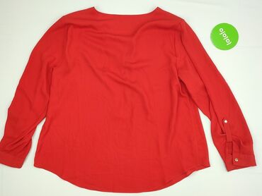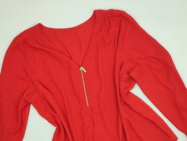 Czerwona bluzka damska z długim rękawem - Fason: luźniejszy krój z dekoltem w kształcie litery V - Rękawy: długie, lekko bufiaste z marszczeniami; mankiety zapinane na ozdobny guzik - Materiał: 50...