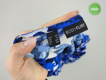 Bluzka damska BODYFLIRT - Rozmiar: EU 42 (GB 16, FR 44, IT 48) - Fason: T‑shirt z krótkim rękawem, okrągły dekolt - Wzór: biały, kwiatowy nadruk na intensywnie niebieskim tle - Materiał: 100% wisk...Stan:
