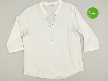 Bluzka damska ORSAY – biała, ażurowa - Materiał: lekka, półtransparentna siateczka w drobne kropki (plumeti) z podszyciem w części korpusowej - Rękawy: 3/4, prześwitujące, zakończone delikatną lam...