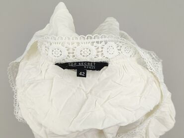 Biała bluzka damska Top Secret Woman - Krój: luźny, lekko skrócony - Dekolt: w kształcie litery V - Rękaw: krótki z delikatnymi marszczeniami przy ramionach i mankietach - Materiał: 100% wiskoza –...