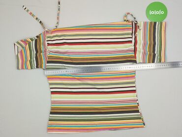 Bluzka w paski EXXE, rozmiar 38 - Fason: dopasowana, z krótkim rękawem - Dekolt: szeroki, hiszpański/opuszczany na ramiona; jedno ramiączko wiązane - Wzór: poziome paski białe na morsko‑zielonym t...