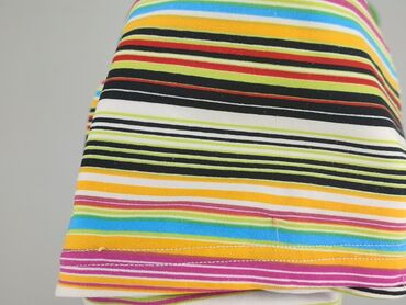 Biała bluzka damska z krótkim rękawem, ozdobiona pionowymi, wielokolorowymi paskami. Posiada okrągły dekolt i marszczenie w talii, co pozwala na podkreślenie sylwetki. Krótkie rękawy dodają lekkośc...Stan:
