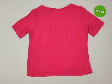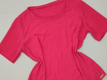 Bluzka damska w kolorze intensywnego fuksji. - Krój: luźny, z marszczeniem pod dekoltem - Dekolt: szeroki, zaokrąglony - Rękaw: do łokcia - Rozmiar z metki: M - Skład materiału: 96% wiskoza, 4% el...