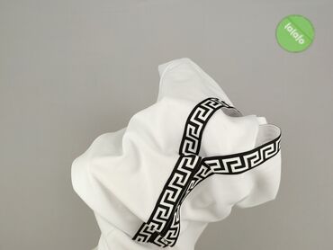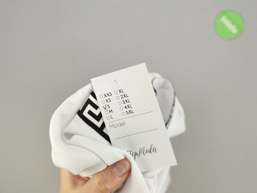 Biała bluzka damska z krótkim rękawem - Fason: luźny, oversize; lekko opadające rękawy - Dekolt: w kształcie litery V z krótką stójką - Materiał: 100% poliester (metka na zdjęciu) - Rozmiar z metk...