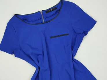 Bluzka damska Reserved - Kolor: głęboki niebieski - Fason: prosty, lekko pudełkowy, z krótkimi rękawkami typu cap - Dekolt: okrągły - Zapięcie: zamek błyskawiczny z tyłu - Detal: pionowe, subtelne...Stan: