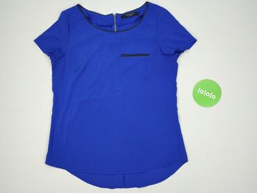 Bluzka damska Reserved - Marka: Reserved (linia Let’s Be Beautiful) - Rozmiar z metki: S - Kolor: intensywny kobaltowy/elektryczny niebieski z czarnym połyskiem - Fason: luźna, z krótkim rękawem t...