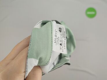 Bluzka damska z długim rękawem, rozmiar XL. - Kolor: jasna mięta/pastelowa zieleń. - Krój: prosty, z ozdobną falbaną biegnącą skośnie przez przód oraz po boku. - Dekolt: okrągły. - Materiał: ci...