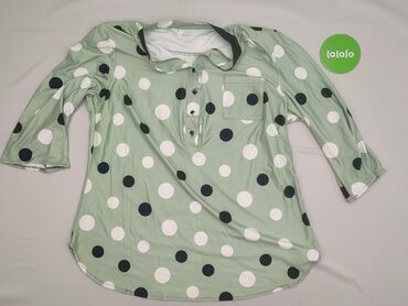 Bluzka damska SUSAN GRAVER - Rozmiar: XL (na metce) - Kolor/wzór: zielony z białym, abstrakcyjny, kropki i geometryczne motywy - Krój: luźniejsza góra, rękawy 3/4, okrągły dekolt - Materiał: 95% p...