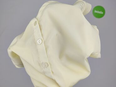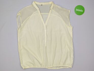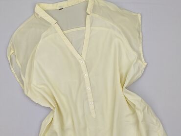 Bluzka damska z krótkim rękawem - Kolor: bardzo jasny żółty (pastelowy) - Fason: luźny, prosty krój - Dekolt: w kształcie V z krótką listwą i 3 guzikami - Rękawy: krótkie, swobodne - Detal: delika...