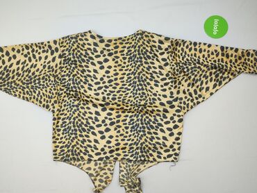 Żółta bluzka damska z lekkiego, zwiewnego materiału - Krój: luźny, asymetryczny dół z nakładającymi się panelami z przodu - Dekolt: głęboki w kształcie litery V - Rękawy: 3/4, lekko rozszerzane - ...