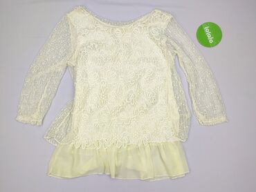 Bluzka damska z falbaną – Made in Italy - Kolor: pastelowy, jasny żółty - Materiał: 100% bawełna (lekka, przewiewna tkanina) - Krój: luźny, zwiewny - Dekolt: szeroki z obfitą falbaną; z przodu tro...Stan: