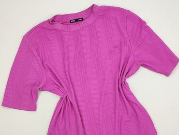 Bluzka Sinsay – rozmiar M - Kolor: intensywny fuksjowy/różowy - Fason: prosta, lekko skrócona długość - Rękaw: do łokcia - Dekolt: półgolf - Materiał: prążkowana, elastyczna dzianina zapewniająca ...
