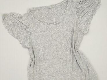 Bluzka damska z krótkim rękawem - Kolor: melanż szary (subtelny, wielotonowy splot) - Krój: luźny, swobodny, z obniżoną linią ramion; rękaw do łokcia zakończony szerokim mankietem - Dekolt: w kszt...