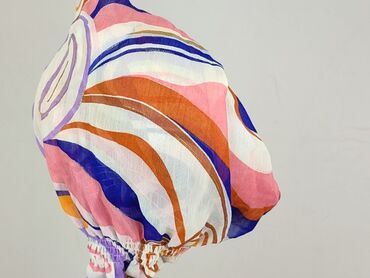 Bluzka damska z lekkiej, półprzezroczystej tkaniny w artystyczny, kwiatowo‑pasiasty wzór. Kolory: odcienie koralu, różu, zieleni i bieli z granatowymi akcentami. - Fason oversize z opadającym ręka...