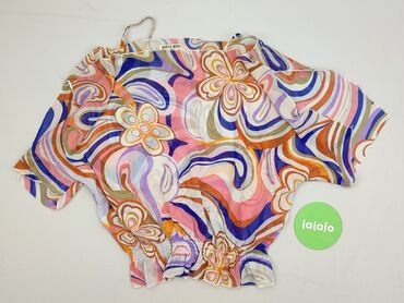 Bluzka damska z wzorem kwiatowym - Krój: prosty, skrócony, z bardzo szerokimi bufiastymi rękawami do łokcia - Dekolt: okrągły - Tkanina: lekko strukturyzowana, cienka, zwiewna - Wzór/kolor: drobne...
