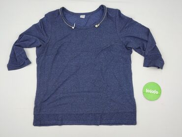 Rękaw 3/4Bluzka damska z dzianiny, kolor granatowy melanż.