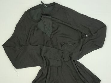 Czarna bluzka damska House, rozmiar XS. - Krótki rękaw - Dekolt w kształcie litery V z dekoracyjnym metalowym suwakiem z przodu - Delikatna, lejąca tkanina - Zaokrąglony, lekko wydłużony tył -...