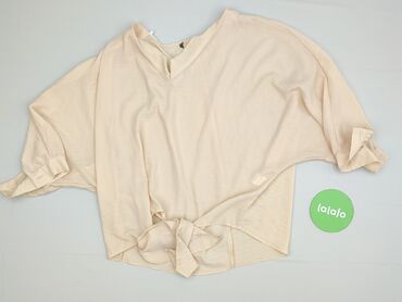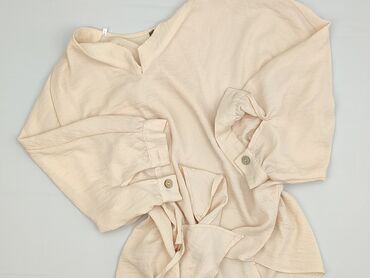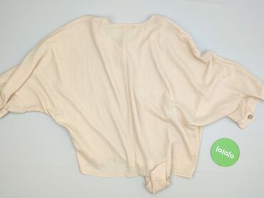 Bluzka damska oversize w kolorze beżowym/piaskowym. - Krój: luźny, prosty, z szerokimi, krótkimi rękawami typu kimono - Dekolt: okrągły - Zapięcie: z tyłu na guziczek - Drobne rozcięcia po bokach ...