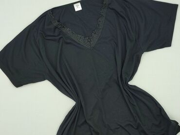 Czarna bluzka damska z ażurowym wzorem - Krój: luźny, opuszczone ramiona, krótkie rękawy - Dekolt: w kształcie litery V - Materiał: 95% poliester, 5% spandex – lekko elastyczny, miękki, przewiewny...