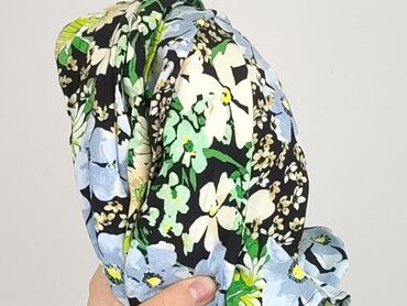 - Wzór: gęsty, kwiatowy print w odcieniach błękitu, zieleni, bieli i żółci na czarnym tle