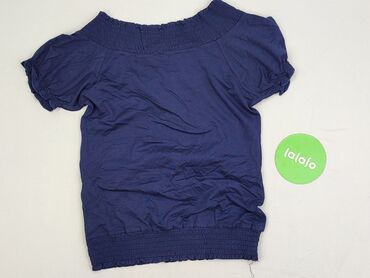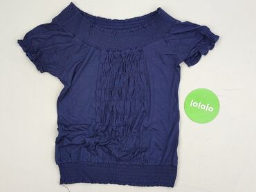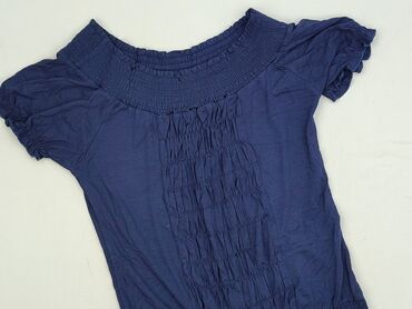 Bluzka damska BERGE w stylu marynistycznym - Fason: odkryte ramiona/łódka z elastyczną gumką u góry, krótkie rękawki - Kolorystyka: granat z białymi i granatowymi paskami u góry, dół gładki granat...Stan: