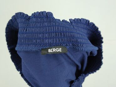 Bluzka damska BERGE w stylu marynistycznym - Fason: odkryte ramiona/łódka z elastyczną gumką u góry, krótkie rękawki - Kolorystyka: granat z białymi i granatowymi paskami u góry, dół gładki granat...