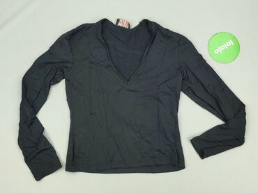 Bluzka damska H&M - Kolor: czarny - Fason: dopasowany long sleeve - Dekolt: głęboki w serek (V-neck) - Rękaw: długi - Rozmiar z metki: M - Materiał: cienka, elastyczna dzianina bawełniana z domies...