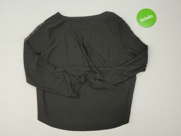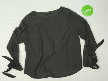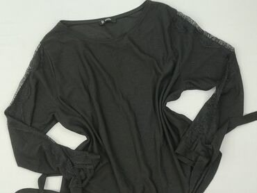 Czarna bluzka damska z ozdobnym panelem z przodu - Rozmiar: M (EUR/US/CA/MX – M) - Fason: luźniejszy, lekko wydłużony tył, rękaw 3/4 - Dekolt: łódka z subtelną lamówką; z tyłu łezka zapinana na gu...