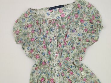 Bluzka damska ZARA, rozmiar S (EU S / USA S / MEX 26), made in Morocco. - Wzór: kwiatowy – róże i liście na jasnym tle - Tkanina: 99% wiskoza, 1% włókno metalizowane – delikatne, złote akcenty na ...