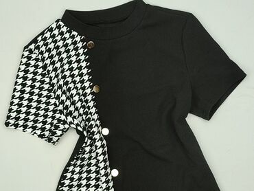 Bluzka damska z krótkim rękawem, wzór geometryczny - Kolorystyka: czarno-biała, gęsty wzór aztecko-geometryczny na całej powierzchni - Krój: prosta linia, dekolt w kształcie litery V - Rękawy: kró...