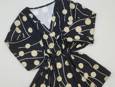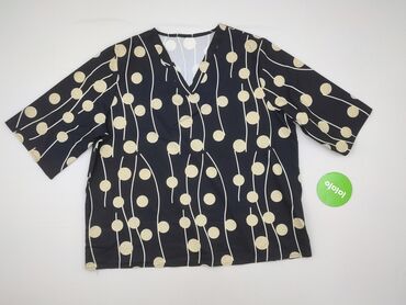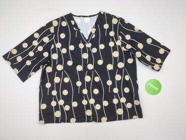 Bluzka damska z dekoltem w serek, wzór w beżowe kropki i pionowe linie na czarnym tle. - Rozmiar: XXL (metka widoczna na zdjęciu) - Krój: luźny, z zaszewkami modelującymi; rękaw 3/4 - Dekolt: V-ne...
