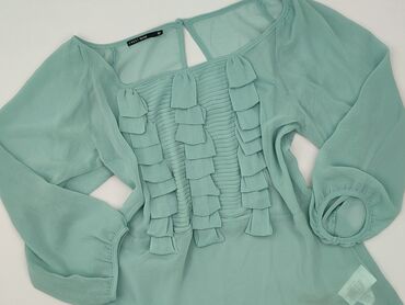 Bluzka damska Carry your’s, rozmiar S - Kolor: biały z nadrukiem w ciemnoszare liście/pióra - Krój: lekko wydłużony tył, zaokrąglony dół - Zapięcie: częściowa listwa guzikowa z przodu (guziki biał...