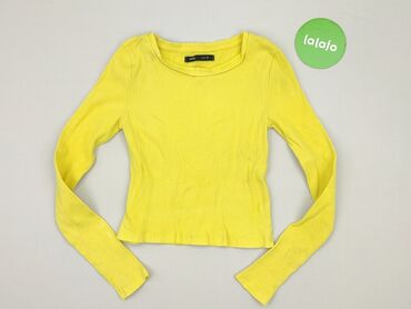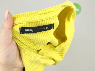 Bluzka Sinsay, rozmiar M - Krój: krótka, dopasowana koszulka z krótkim rękawem - Zapięcie: front na napy (metalowe zatrzaski) - Dekolt: okrągły - Kolor: pastelowy, jasnożółty - Materiał: prążkowan...