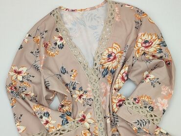 Bluzka damska SHEIN - Model: kopertowa bluzka z wiązaniem na dole - Krój: luźny top z krótkim rękawem, dekolt w serek (koperta), ściągany troczkiem u dołu - Wzór: orientalny/boho patchwork, wielok...