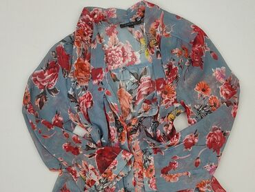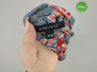 Bluzka damska AMISU, rozmiar EU XS/S - Krój: krótka bluzka kopertowa (wrap), lekko luźna, z marszczeniem po bokach - Rękawy: krótkie/kimono - Wzór: etniczny/boho w odcieniach czerwieni z czarnymi ...